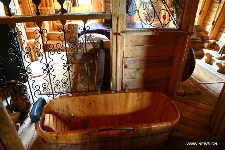 | Photo taken on May 22, 2014 shows the decoration inside the Trojan Horse of the La Balad des Gnomes hotel near the town of Durbuy, Belgium. The Trojan Horse is a specially designed building of hotel La Balad des Gnomes in Belgium. (Xinhua/Gong Bing) |