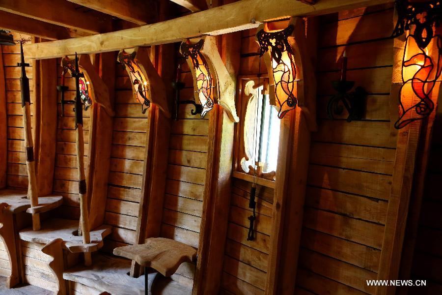 Photo taken on May 22, 2014 shows the decoration inside the Trojan Horse of the La Balad des Gnomes hotel near the town of Durbuy, Belgium. The Trojan Horse is a specially designed building of hotel La Balad des Gnomes in Belgium. (Xinhua/Gong Bing)