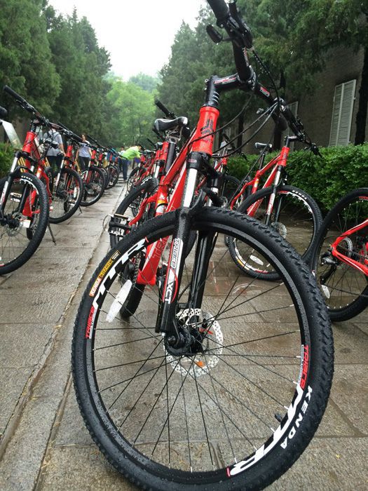 | The staff check the bikes for the “Climate Race” at Danish Embassy before the race on May 24, 214. (People’s Daily Online/Gao Yinan) |