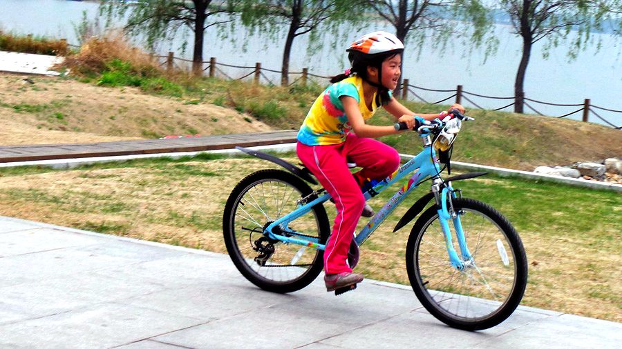 A child participates in the “Climate Race ” held in Beijing Yeya Lake National Wetland Park in Yanqing north of Beijing on May 24, 2014. (People’s Daily Online/Kong Defang)