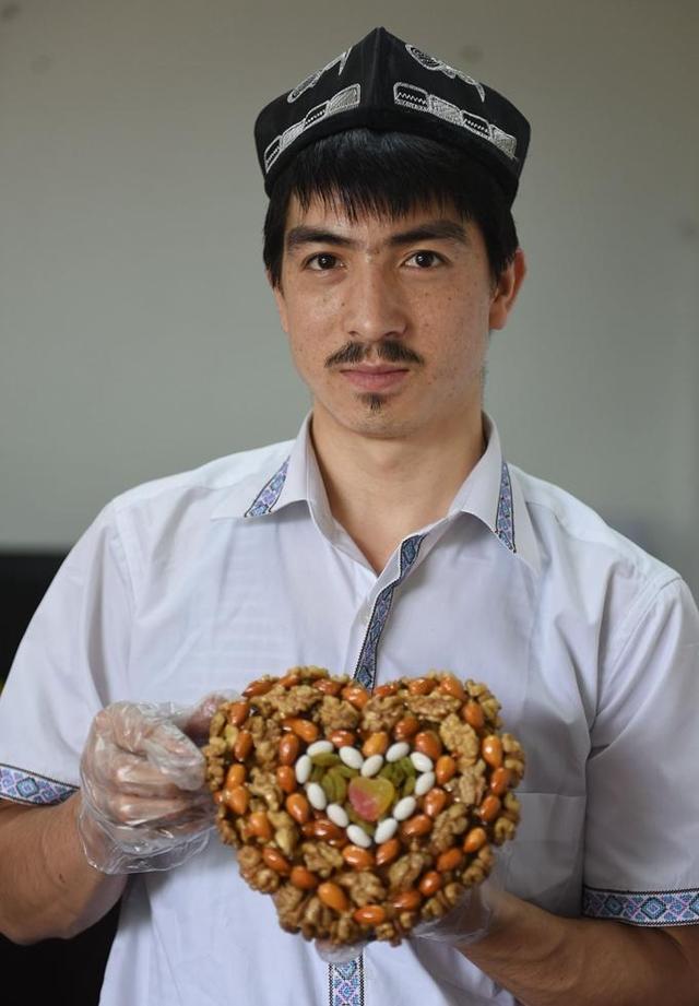 Uygur, Han students sell Xinjiang nuts cake together (4)