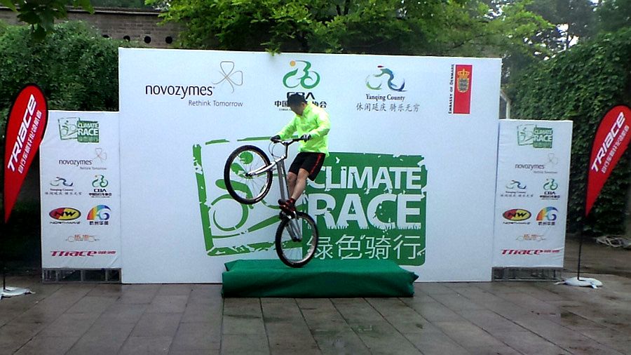 A Chinese performer presents stunts on bike. (People’ Daily Online/ Gao Yinan)