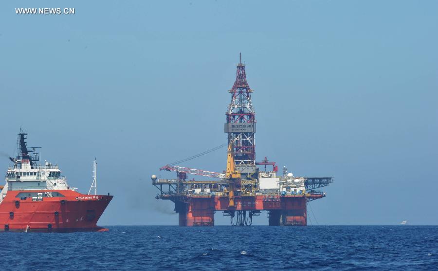 Photo taken on May 17, 2014 shows the site of China's rig 981, which is 17 nautical miles away from Zhongjian Island, administrated by Sansha City, south China's Hainan Province. Rig 981 started the second stage of drilling operation on Tuesday in the South China Sea. (Xinhua/Zhao Yingquan)