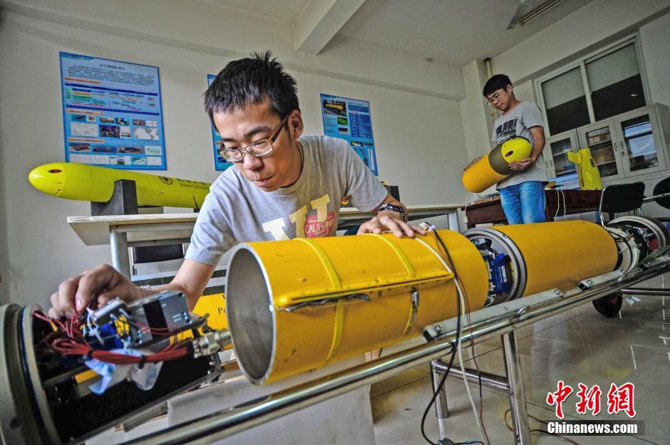 Working staff test underwater glider.(CNS/Tong Yu)