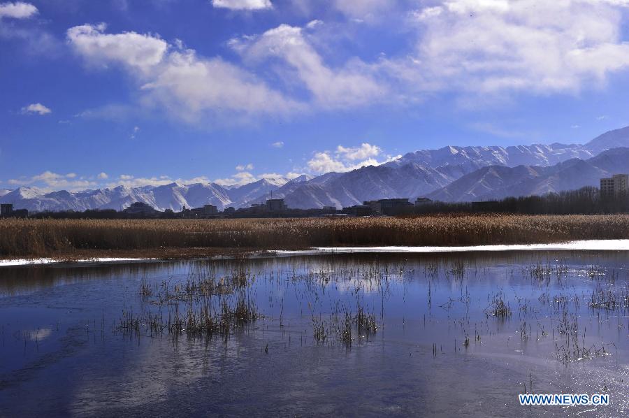 Photo taken on Jan. 12, 2014 shows the scenery of Lalu Wetland Reserve in Lhasa, capital of southwest China's Tibet Autonomous Region. According to a survey released on Wednesday by the regional forestry department, Tibet has seen an increase of wetland by 524,200 hectares in the past decade thanks to dedicated conservation efforts, taking the region's total to 6.52 million hectares. (Xinhua/Liu Kun)