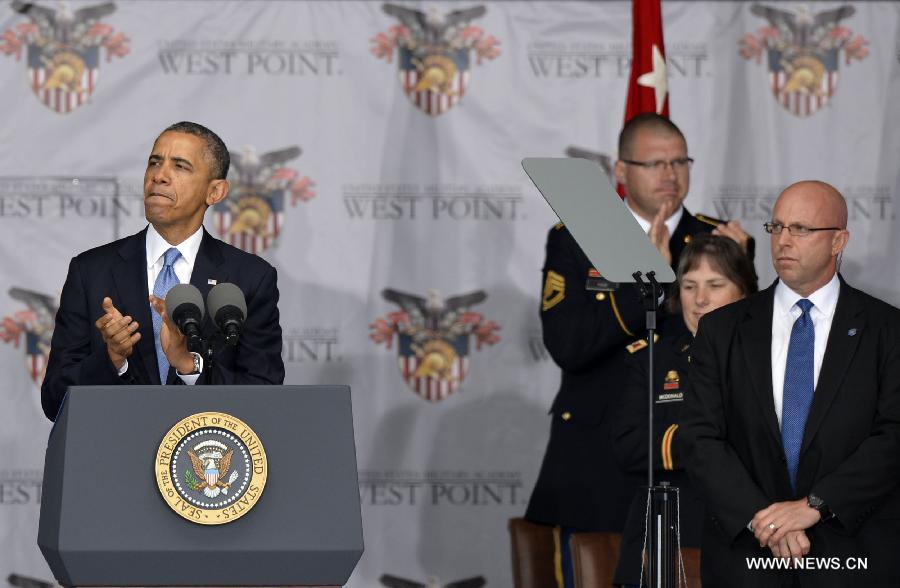U.S. President Barack Obama (L) addresses the graduation ceremony at the United States Military Academy at West Point, New York, the United States, on May 28, 2014. Obama said here Wednesday that he believes in the foreseeable future, terrorism remains the most direct threat to America at home and abroad. (Xinhua/Wang Lei)