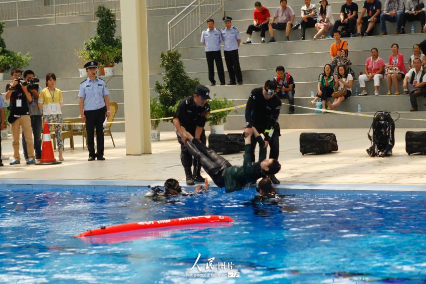 Simulation: two commandos search and salvage underwater suspicious objects and remains of victims.(vip.people.com.cn/Li Faxing)