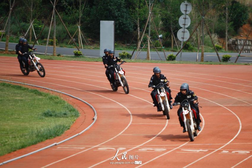Commandos drive motorcycles and shoot on the run.(vip.people.com.cn/Li Faxing)