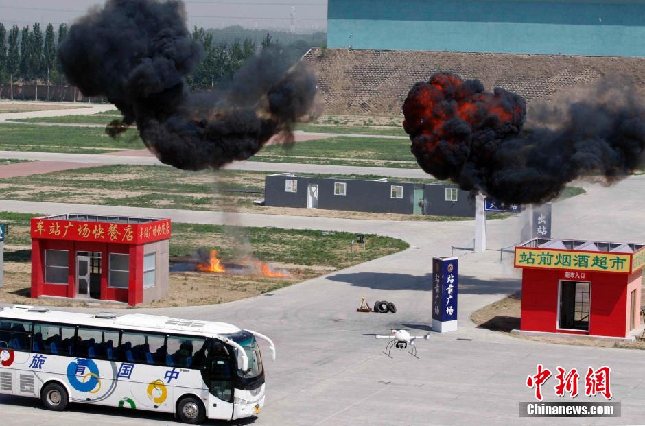 An anti-terrorism and riot comprehensive exercise is held in Beijing on Thursday. Special forces, fire and rescue departments jointly took part in the drill. The police are set to start a year-long nationwide anti-terrorism operation after attacks took place in Xinjiang and several cities across China, according to Xinhua News Agency. (CNS Photo)