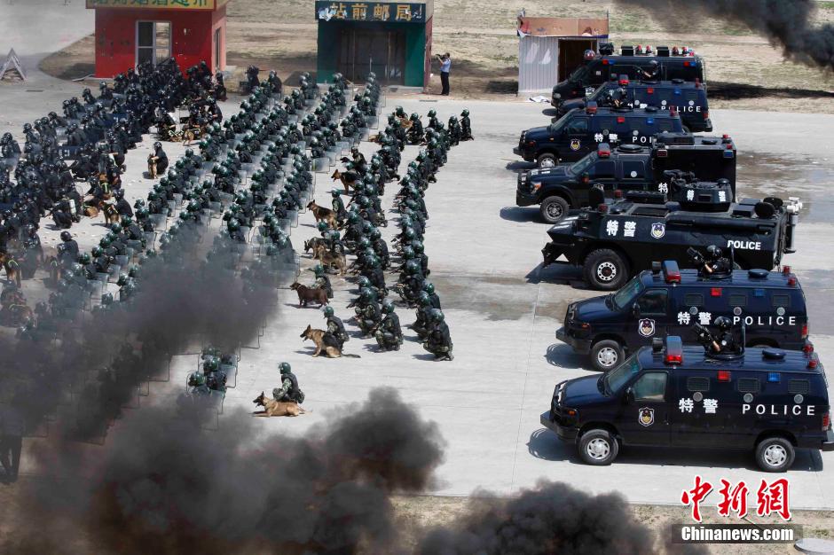 An anti-terrorism and riot comprehensive exercise is held in Beijing on Thursday. Special forces, fire and rescue departments jointly took part in the drill. The police are set to start a year-long nationwide anti-terrorism operation after attacks took place in Xinjiang and several cities across China, according to Xinhua News Agency. (CNS Photo)