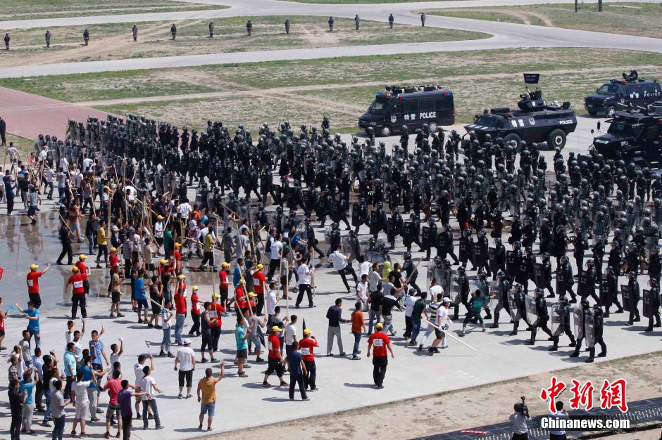 An anti-terrorism and riot comprehensive exercise is held in Beijing on Thursday. Special forces, fire and rescue departments jointly took part in the drill. The police are set to start a year-long nationwide anti-terrorism operation after attacks took place in Xinjiang and several cities across China, according to Xinhua News Agency. (CNS Photo)