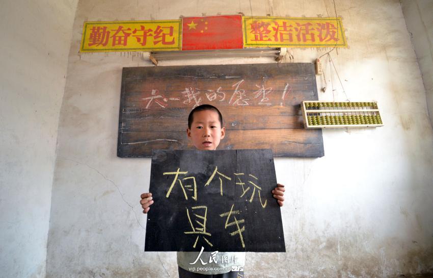 6-year-old Deng Jinpeng: have a toy car. (Photo/Vip.people.com.cn)