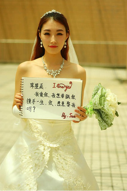 College girl in wedding dress proposes to boyfriend on Weibo (7)