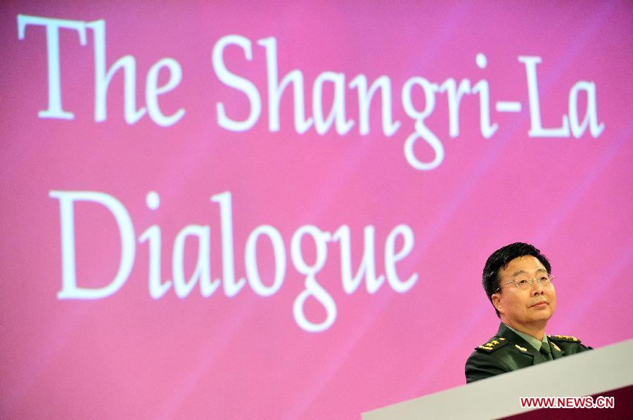 Wang Guanzhong, deputy chief of the General Staff of the Chinese People's Liberation Army, speaks during the fourth plenary session of the 13th Shangri-La Dialogue in Singapore June 1, 2014, the final day of the multilateral forum focusing on security issues in Asia. (Xinhua/Then Chih Wey)