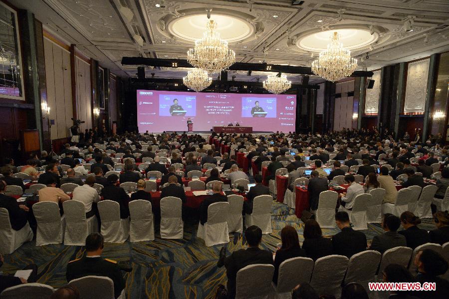 The fourth plenary session of the 13th Shangri-La Dialogue is held in Singapore on June 1, 2014, the final day of the multilateral forum focusing on security issues in Asia. (Xinhua/Then Chih Wey)