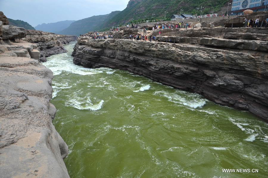 It is here that the Yellow River is flanked by steep cliffs, narrowing its stream to the width of the spout of a kettle, hence its name: Hukou Falls. The falls' drop is nine meters tall and generates a huge amount of hydro-power.