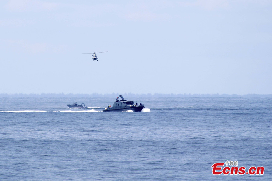 The 16th Chinese Navy escort fleet and Cameroon navy conduct anti-piracy exercises at Gulf of Guinea on June 2, 2014 (local time). The exercises, first of its kind between the two countries, aim to improve capabilities of maintaining maritime security and combating maritime threats. (Photo/China News Service)