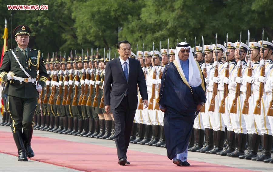 Chinese Premier Li Keqiang holds a welcoming ceremony for Kuwaiti Prime Minister Sheikh Jaber Al-Mubarak Al-Hamad Al-Sabah before their talks in Beijing, capital of China, June 3, 2014. (Xinhua/Huang Jingwen)