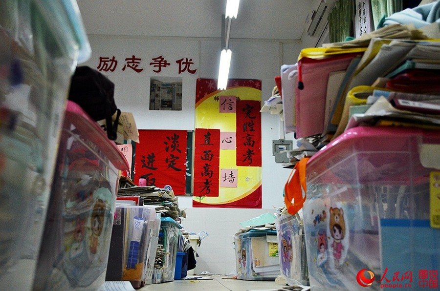 There are signs and slogans stuck on the walls of the classrooms and the hall. Reading materials are piled up beside the desks. Some students are busy with reviewing; some are dealing with unsolved problems and some are consulting with their teachers. They try to adjust themselves to the best status to face the crucial moment in their life.