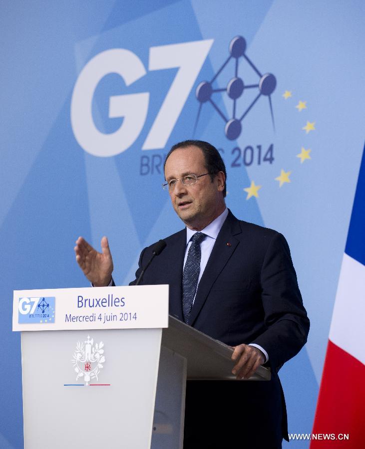 French President Francois Hollande addresses the press conference during the G7 summit in Brussels, Belgium, June 4, 2014. (Xinhua/The Council of the European Union)