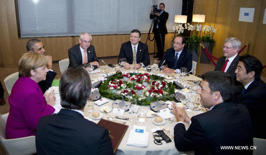 Leaders join the official dinner during the G7 summit in Brussels, Belgium, June 4, 2014. (Xinhua/The Council of the European Union)