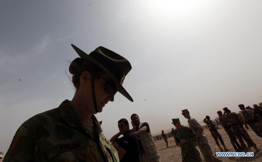 An Australian soldier takes a break during the "Eager Lion" military drill at the Gulf of Aqaba, some 330 kilometers south of Amman, Jordan, June 5, 2014. The Jordan-hosted "Eager Lion" international military drill with the participation of 22 countries seeks to strengthen the skills of the Jordanian army and enhance cooperation, the army said.(Xinhua/Mohammad Abu Ghosh)