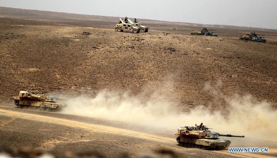 Special operations forces participate in the "Eager Lion" military drill at the Gulf of Aqaba, some 330 kilometers south of Amman, Jordan, June 5, 2014. The Jordan-hosted "Eager Lion" international military drill with the participation of 22 countries seeks to strengthen the skills of the Jordanian army and enhance cooperation, the army said.(Xinhua/Mohammad Abu Ghosh)