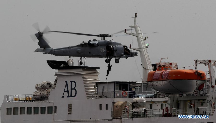 Special operations forces participate in the "Eager Lion" military drill at the Gulf of Aqaba, some 330 kilometers south of Amman, Jordan, June 5, 2014. The Jordan-hosted "Eager Lion" international military drill with the participation of 22 countries seeks to strengthen the skills of the Jordanian army and enhance cooperation, the army said.(Xinhua/Mohammad Abu Ghosh)