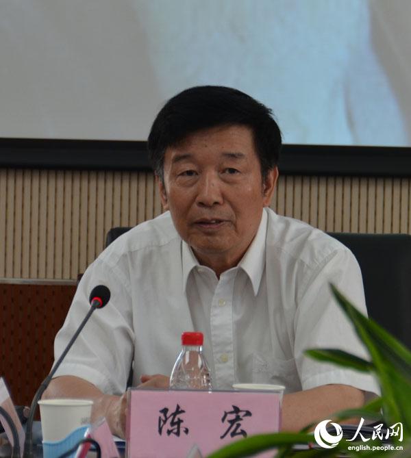 Chen Hong, president of the Beijing Ethnic Education Association, presides over the seminar in Beijing Huimin School, June 3, 2014. (People's Daily Online/Du Mingming)