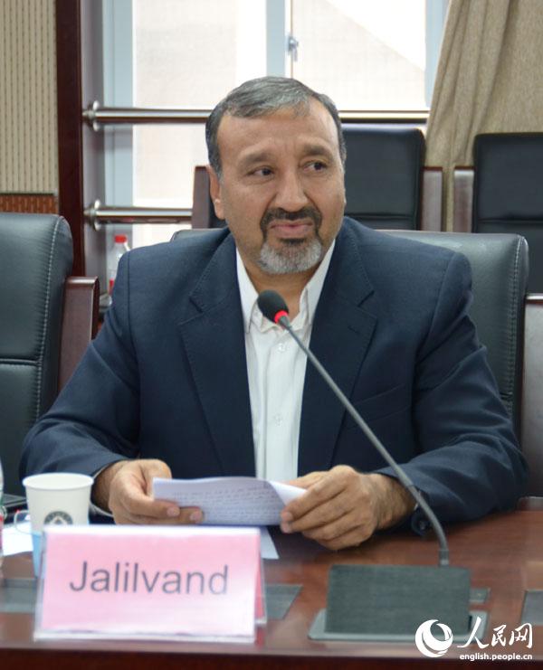 Hossein Jalivand, Cultural Counselor of the Embassy of Iran in China, delivers a speech at the seminar in Beijing Huimin School, June 3, 2014. (People's Daily Online/Du Mingming)