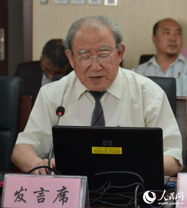 Hu Zhenhua, a professor with Minzu University of China, delivers a speech at the seminar in Beijing Huimin School, June 3, 2014. (People's Daily Online/Du Mingming)