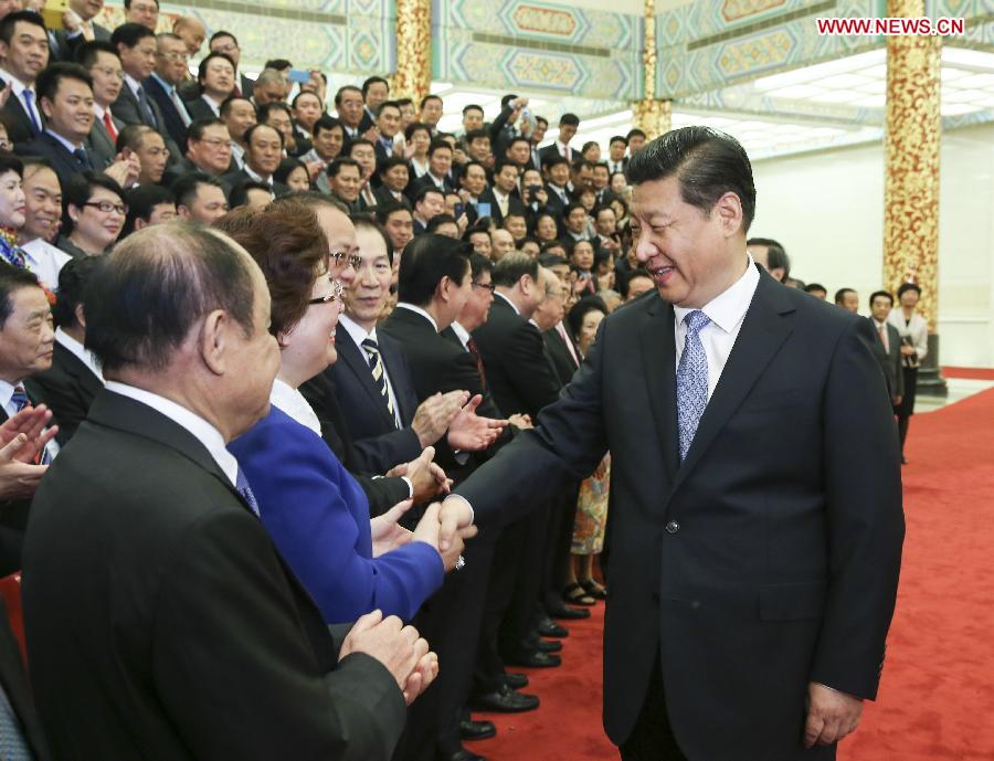 Chinese President Xi Jinping (R), also General Secretary of the Communist Party of China (CPC) Central Committee, meets with representatives attending the seventh Conference of Friendship of Overseas Chinese Associations in Beijing, capital of China, June 6, 2014. (Xinhua/Lan Hongguang)