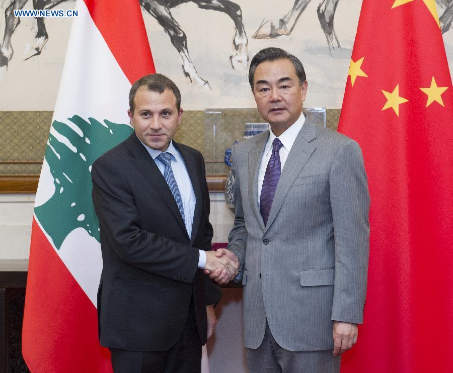 Chinese Foreign Minister Wang Yi (R) meets with his Lebanese counterpart Gebran Bassil at the Diaoyutai State Guesthouse in Beijing, capital of China, June 6, 2014. (Xinhua/Wang Ye)