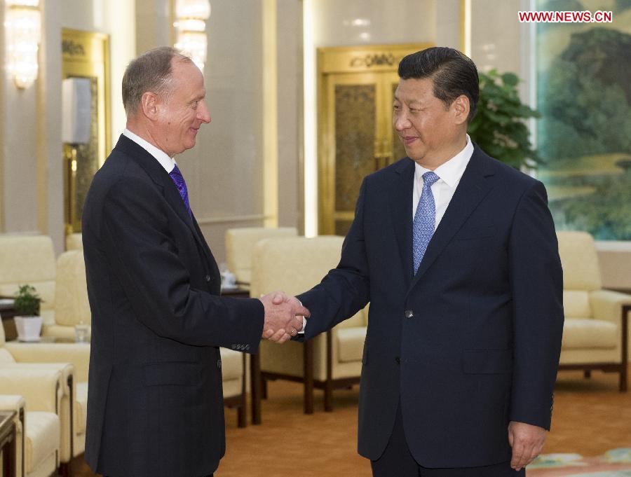 Chinese President Xi Jinping (R) meets with Russian Security Council Secretary Nikolai Patrushev in Beijing, capital of China, June 6, 2014. Nikolai Patrushev was here to attend the first meeting of China-Russia institutionalized cooperation in law enforcement and security and the 10th round of China-Russia strategic security consultation. (Xinhua/Xie Huanchi)