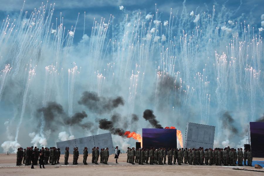 The clear blue skies above Ouistreham, Normandy, are lit up as part of a re-enactment on June 6, 2014. (Xinhua/AFP)