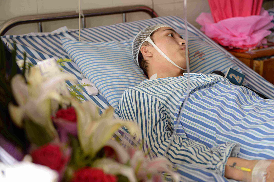 Liu lies in bed in the hospital June 7, 2014. (Photo/Xinhua)