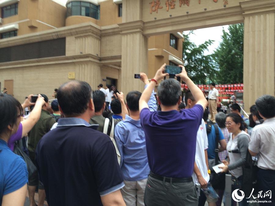 Parents take photos to mark the ending moment of the National College Entrance Exam (NECC) on June 8, 2014. (People’s Daily Online/ Wang Xin)