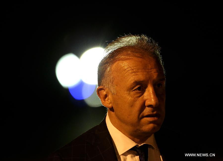 | Coach Zaccheroni Alberto of Japan's national soccer team speaks to media as the team arrive at the Viracopos airport prior of the 2014 World Cup in Campinas, Brazil, June 7, 2014. (Xinhua/Liao Yujie) |
