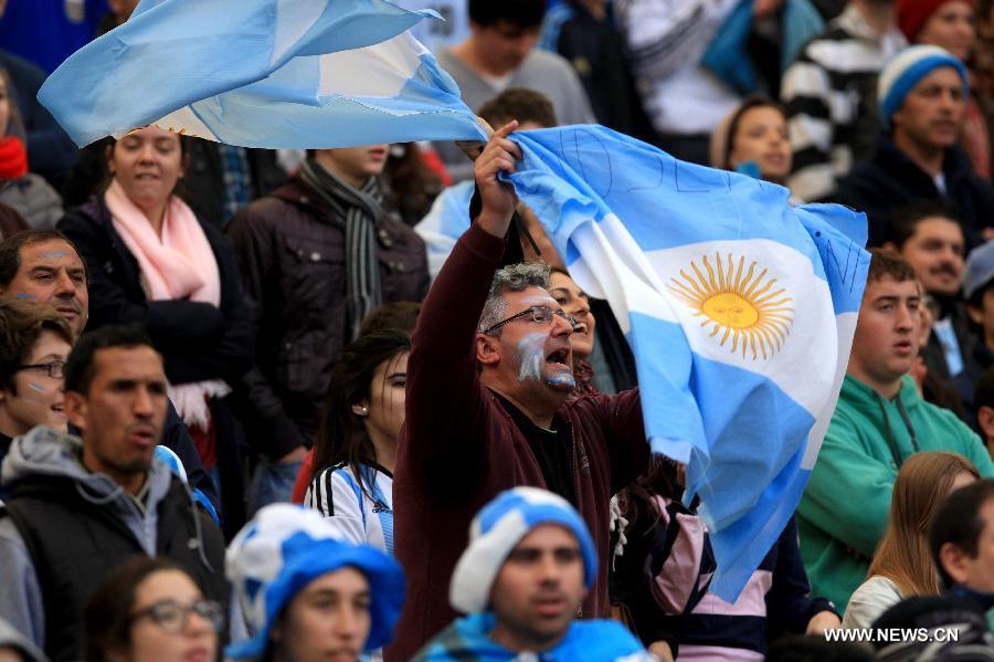 Argentina's fans cheer for the team during the friendly match against Slovenia prior to the FIFA World Cup at Ciudad de La Plata Stadium, in La Plata, Argentina, on June 7, 2014. (Xinhua/Victor Carreira/TELAM)