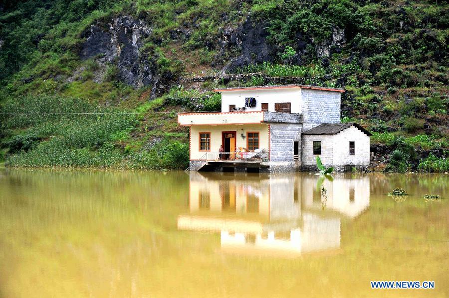 Photo taken on June 9, 2014 shows the flooded Banlie Village of Bansheng Township in Dahua Yao Autonomous County in Hechi City, south China's Guangxi Zhuang Autonomous Region. Heavy rain hit parts of Guangxi Zhuang Autonomous Region, flooding streets and causing damages.(Xinhua/Zhang Ailin)