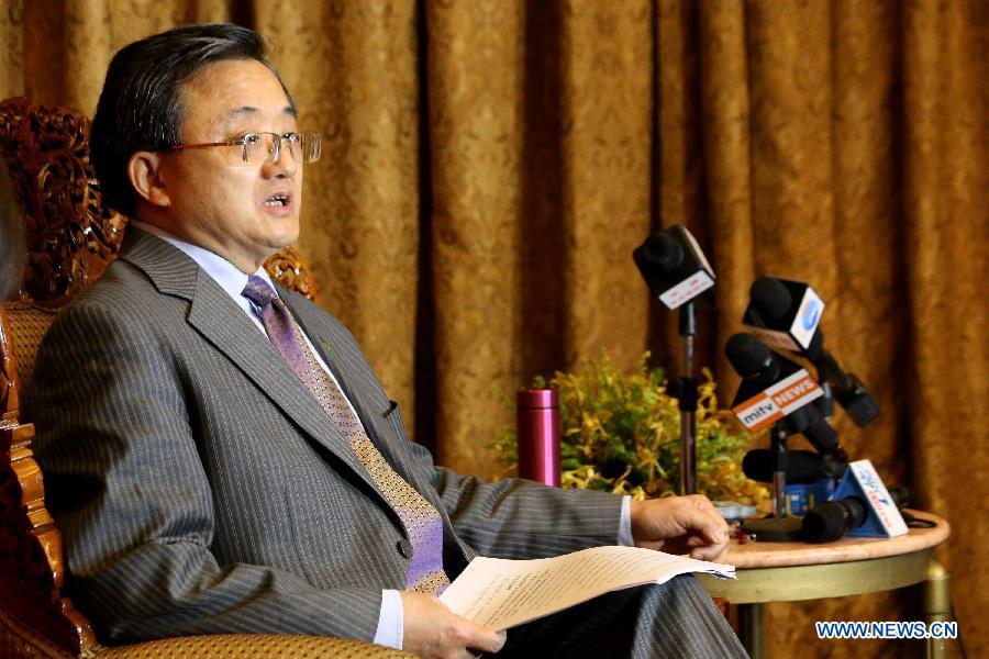 Chinese Vice Foreign Minister Liu Zhenmin speaks to media at a joint interview in Yangon, Myanmar, June 9, 2014. China will firmly support ASEAN's development, its community building and centrality in regional cooperation, and is also committed to growing a healthy, stable and dynamic China-ASEAN relationship, Chinese Vice Foreign Minister Liu Zhenmin told the press here Monday in a joint interview made by mediapersons from China and Myanmar. (Xinhua/U Aung)