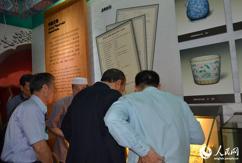 | Cultural Counselor of the Embassy of Iran in China Hossein Jalivand, together with a group of Chinese scholars, visits the Niujie Mosque in Beijing, June 3, 2014. (People's Daily Online/Du Mingming) |