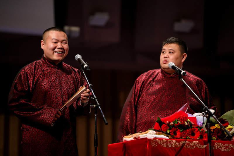 Yue Yunpeng (left) and Sun Yue, famous comedians of Deyun She perform at Sydney Congress Hall (People's Daily Online Australia/ Li Yiming)