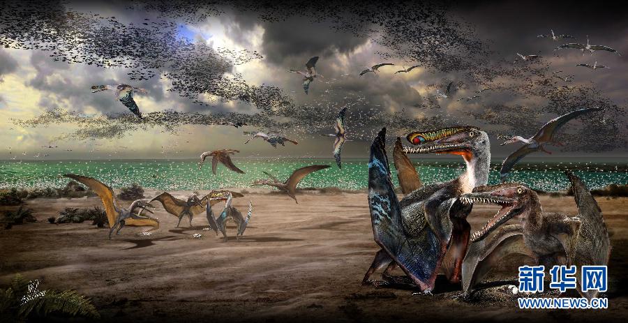 After ten years' field study, Chinese scientists have found the world's largest cluster of cretaceous pterosaur fossils in Hami, northeast China's Xinjiang. About 40 individual pterosaurs and five intact eggs were unearthed on the sites. Previously, only four individual flattened pterosaur eggs had been discovered by scientists.