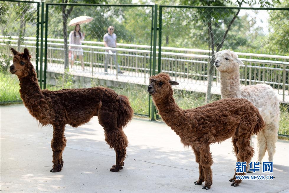 Photo taken on June 10, 2014 shows three alpacas sheared to keep cool at Hefei Zoo in Hefei, capital of central China's Anhui province. (Xinhua/Guo Chen)