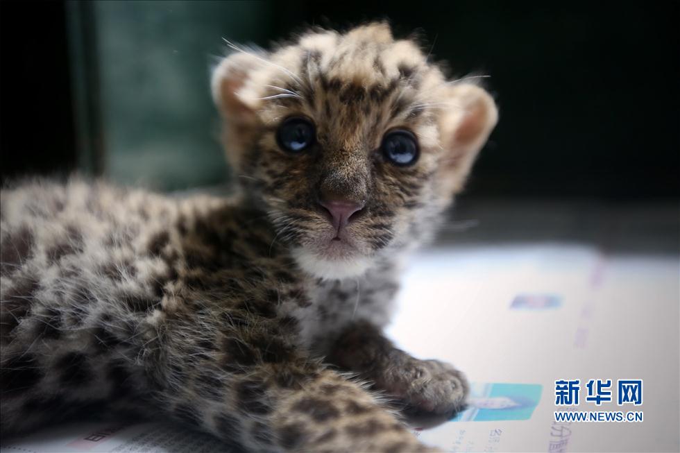 A baby Leopard stays at an incubator on June 7, 2014. (Yao Jianfeng//Xinhua News Agency)