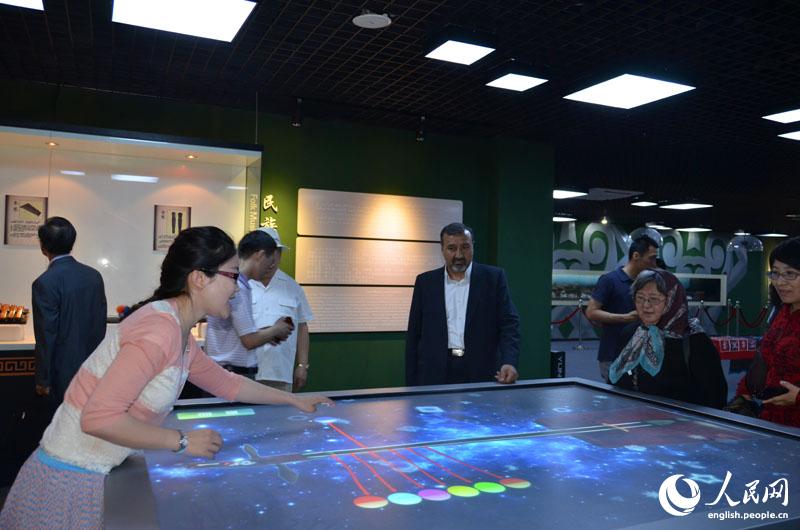 A teacher introduces the ethnic culture education in the Ethnic Culture Museum in Beijing Huimin School, June 3, 2014. (People's Daily Online/Du Mingming)