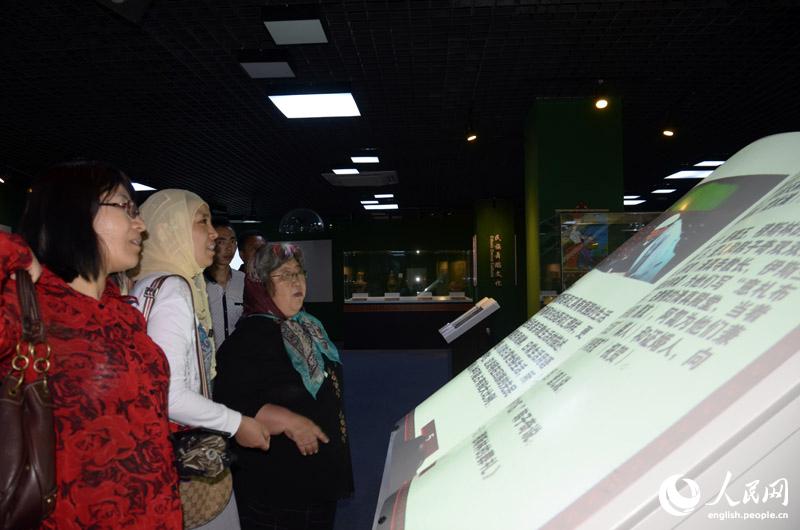 Scholars experience the Chinese folk culture inheritance education in the Ethnic Culture Museum in Beijing Huimin School, June 3, 2014. (People's Daily Online/Du Mingming)