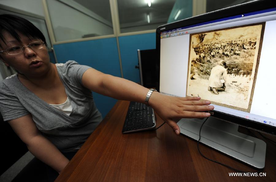 A staff member presents photos taken by the Japanese invaders about the Nanjing Massacre at the Second Historical Archives of China in Nanjing, capital of east China's Jiangsu Province, June 12, 2014. China is applying to UNESCO to list 11 sets of documents relating to the 1937 Nanjing Massacre on the Memory of the World Register. The documents, which include diaries, films, photographs and testimonies, depict the brutality of Japanese invaders in the massacre. (Xinhua/Han Yuqing)
