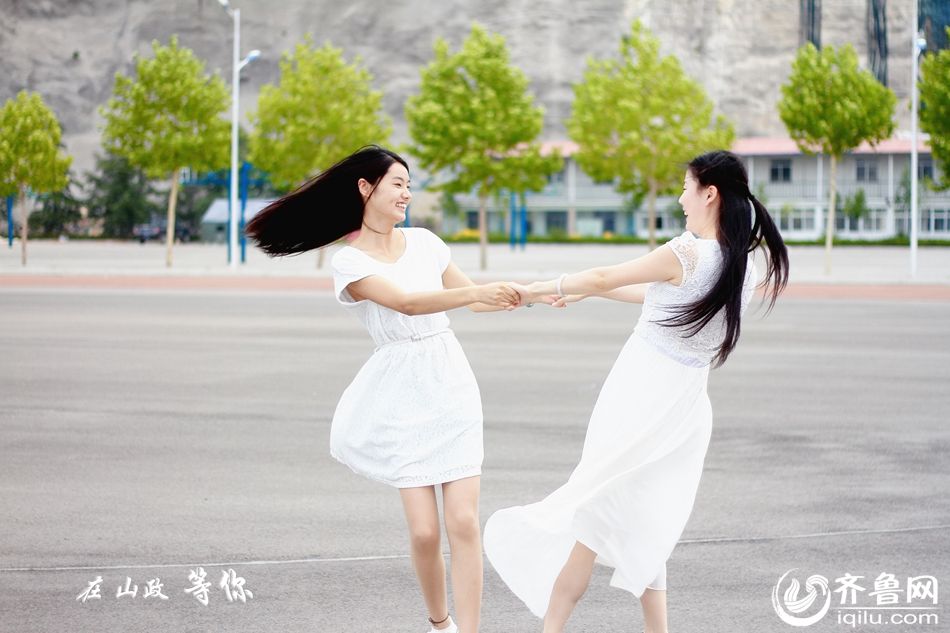 College girls take stylish photos to help enrollment in Shandong. (iqilu.com)